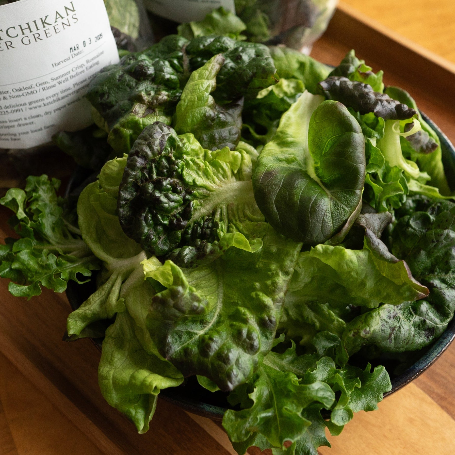 The Lettuce Blend is a mix of 3-5 varieties of lettuce. Varieties may include; oakleaf, romaine, butter, tango, and gem. This is one 7 oz. bag. A minimum of two bags is required for checkout.